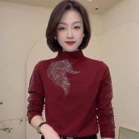 【重工燙鉆中高領打底衫】2025秋冬季必備!半高領設計,保暖修飾臉型,百搭款式無論搭配牛仔褲或裙子都時尚滿分!