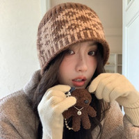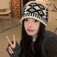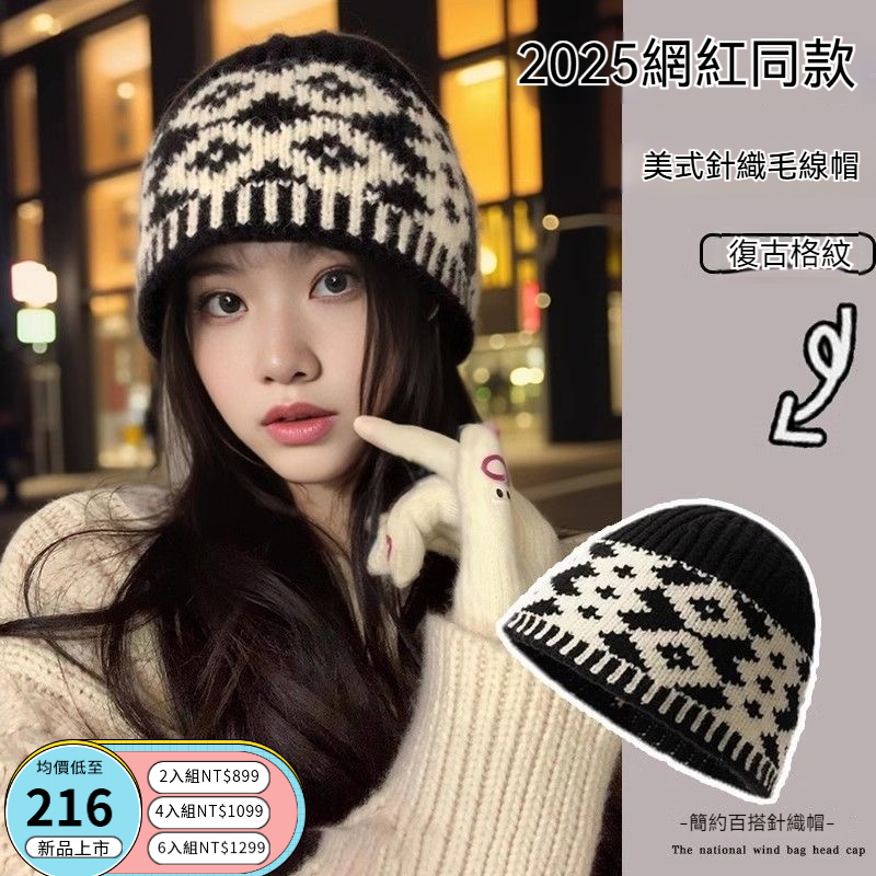 2025秋冬復古提花針織毛線帽,立體編織軟糯材質 , 視覺臉圍-20%!