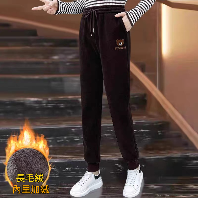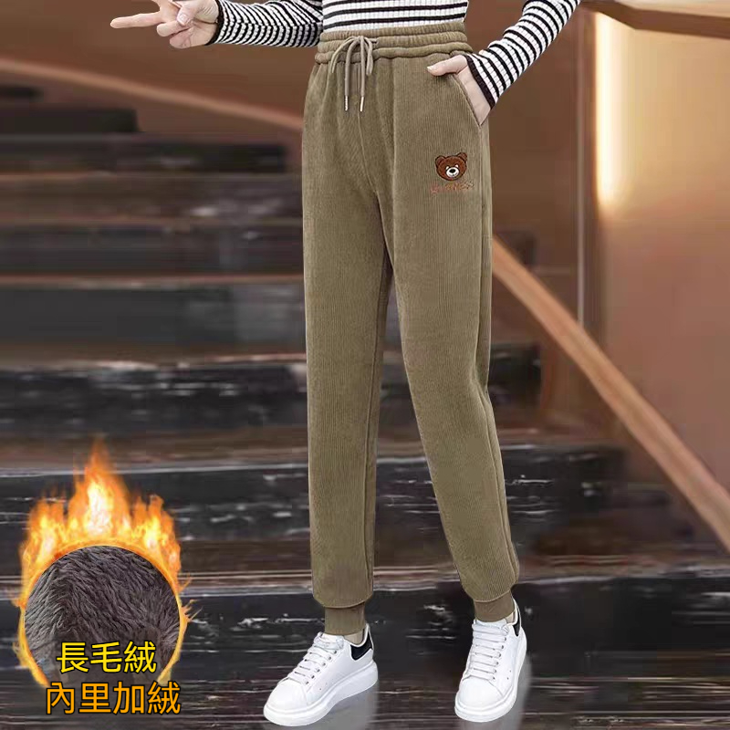 新款加絨小熊刺繡束腳休閒褲,款式簡約大方,有效遮蓋腿部線條,穿在身上闆正不顯臃腫!保暖又舒服