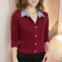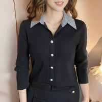 [1] 簡約顯溫柔【秋季新款單品】翻領撞色針織長袖襯衫 1入組 NT$980