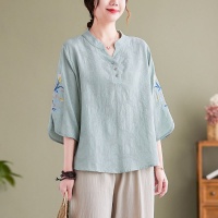 夏日穿搭新寵 棉麻上衣透氣不悶汗 民族風繡花雅致吸睛 寬鬆版型遮肉顯瘦 七分袖設計藏住拜拜肉
