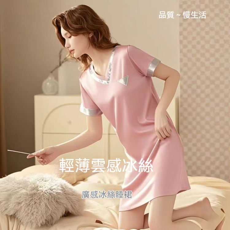 新款薄款高檔涼爽睡衣裙,夏季性感短袖高級感家居服女裙,冰絲涼感,性感透氣