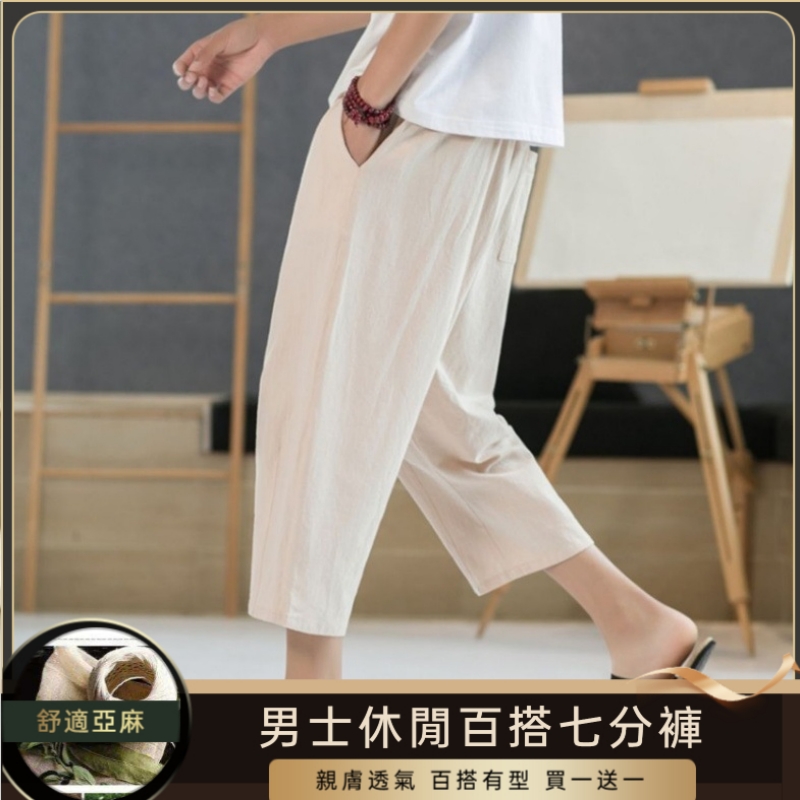[2]【買一送一】七分亞麻褲-2入組NT$1080